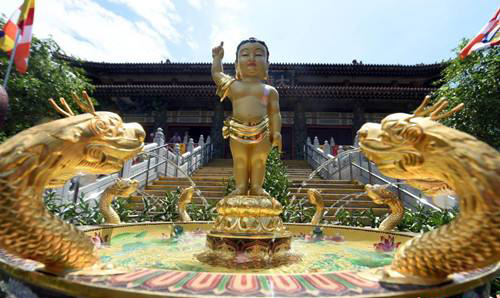 浴佛節又稱佛誕節,時間在每年農歷的四月初八,是佛教中紀念創立者釋迦牟尼佛誕辰的重要節日。相傳2600多年前釋迦牟尼從摩耶夫人的肋下降生時,一手指天,一手指地,說“天上天下,惟我獨尊。”于是大地為之震動,九龍吐水為之沐浴。因此世界各地的佛教徒通常都以浴佛的方式來紀念。