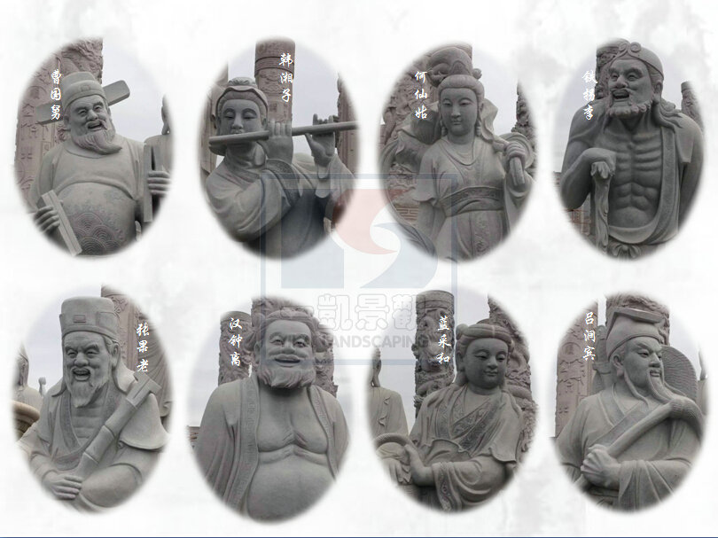 傳說八仙分別代表著男、女、老、少、富、貴、貧、賤,由于八仙均為凡人得道,所以個性與百姓較為接近,是道教中相當重要的神仙代表,中國許多地方都有八仙宮,迎神賽會也都少不了八仙。八仙所持的檀板、扇、拐、笛、劍、葫蘆、拂塵、花籃等八物為“八寶”,代表八仙之品。文藝作品中以八仙過海、八仙獻壽最為有名。