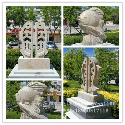 石雕魚又是佛門中的寄愿之物。在佛教舉行的慶典儀式上,在寺院僧尼日常的誦經中,最常見的打擊樂器便是魚狀的“木魚”。據說木頭只有刻成魚的形狀,打擊的聲音才能清脆悅耳,傳得久遠。因此,大大小小的木魚或置于香案或懸掛于殿前,既是裝飾,也是吉祥,更是祈愿。魚,為多仔的動物,繁殖力強,象征多子多福。魚與“余”諧音,又表示了人們期盼生活美滿、年年有余的愿望。而鯉魚中的“鯉”與“利”諧音,鯰魚中的“鯰”與“年”諧音,蓮花中的“蓮”與“連”諧音,故“漁翁得利”、“年年有余”、“連連得魚”便成了人們常說的吉祥話語。