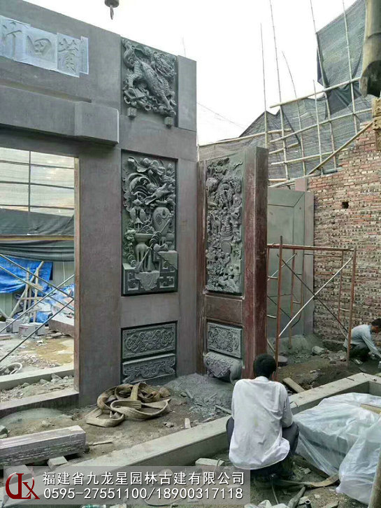 寺廟墻面浮雕壁畫安裝現場 九龍星園林古建
