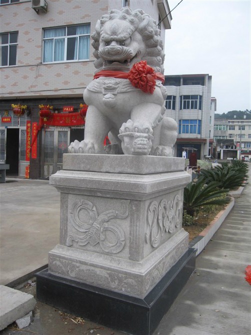 作為我國歷史上封建主義社會發展后期階段的元明清三代。其中元朝的皇室帝王不提倡象生儀衛,所以也就沒有了陵墓石獅這么一說。但是中國歷來對佛道等宗教信仰的重視,為石獅的應用也創造了有利的條件。而明朝石獅子,特別考究。在宮殿、府邸等一些建筑群中,石獅子被雕刻得莊重威嚴,體型巨大而且莊重。作為皇家的石獅,更加講究,從取材到雕刻,再到裝飾無不體現出皇家的威儀。這時候的民間石獅子則顯得多彩多樣,活潑生動,充滿了民間生活的元素。