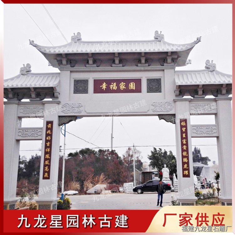 農(nóng)村石雕牌坊雕刻作為傳統(tǒng)文化的象征性建筑物,是一個(gè)村莊的地名標(biāo)識,是村莊入口的標(biāo)志,裝飾美化鄉(xiāng)村的景觀代表,是展現(xiàn)各地文化風(fēng)俗的形態(tài)建筑。選購村口石雕牌坊一定要選擇專業(yè)的石雕廠,不僅制作出來的產(chǎn)品好價(jià)格低,而且在售后服務(wù)方面都會有保障。