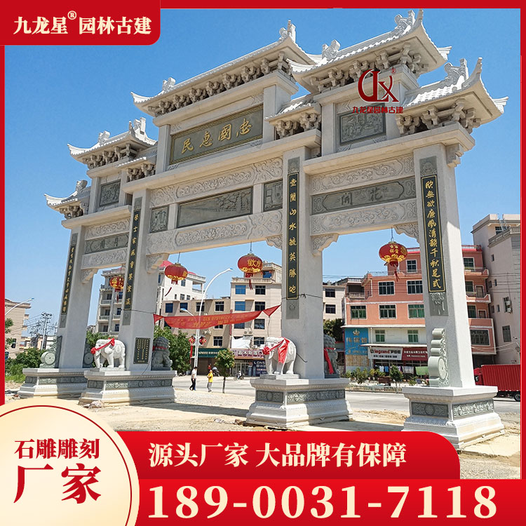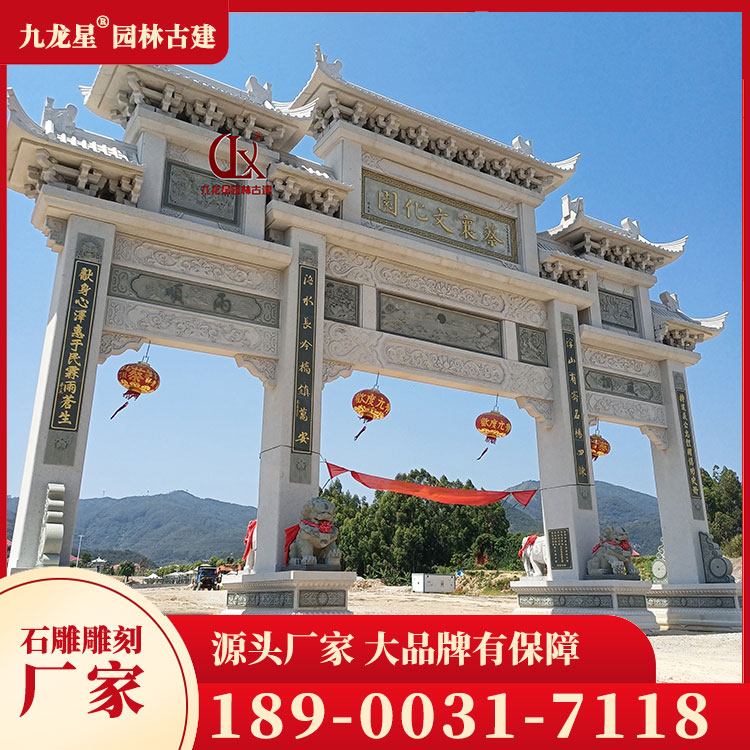 石雕牌坊雕塑的尺寸和規格也是影響其價格的重要因素。一般來說,尺寸越大、規格越高的石雕牌坊雕塑價格越高。因為大型的石雕牌坊雕塑需要更多的材料和更復雜的工藝,同時其運輸和安裝成本也會相應增加。
