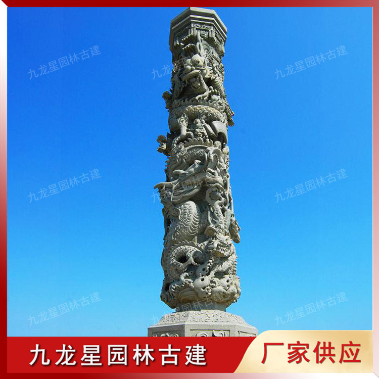 盤龍柱石雕 青石雕龍柱 寺廟石雕龍柱的應用 九龍星