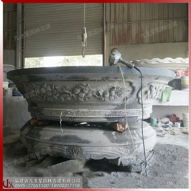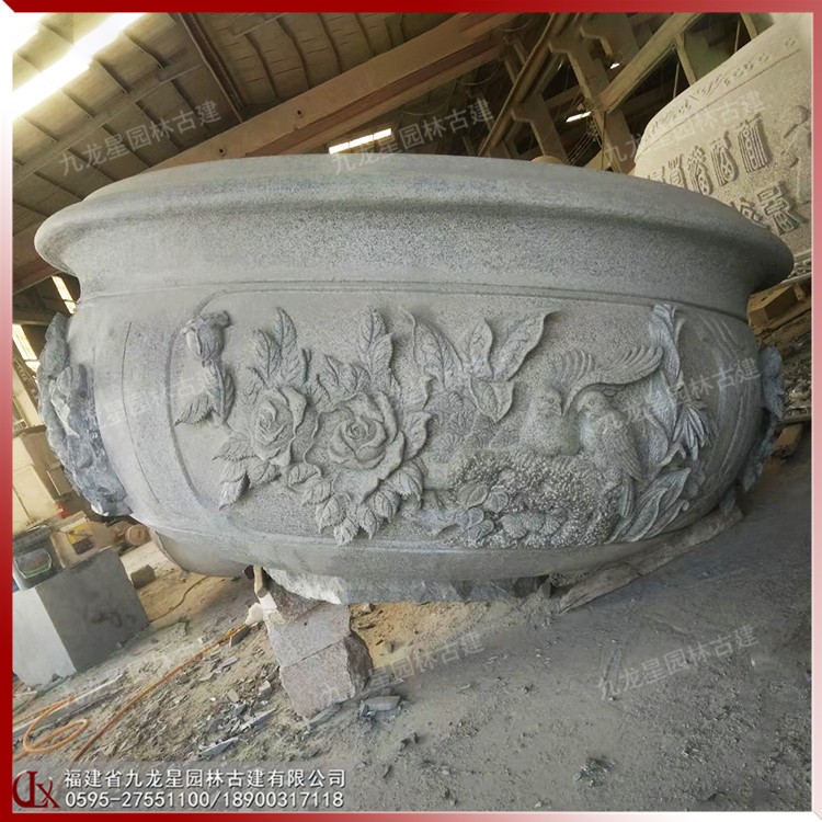中式石材花缽雕塑 庭院石雕花缽樣式 精致雕花