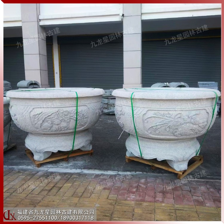 石雕做成的中式石材花缽古樸大方,古香古色,非常適合中式建筑的搭配展示,特別是這種具有現(xiàn)代特色的經(jīng)典傳承文化的創(chuàng)新之作,更是讓人感到耳目一新,并且庭院中擺放這樣的精致雕刻的花缽,在一定程度上提升了整個(gè)建筑的檔次。