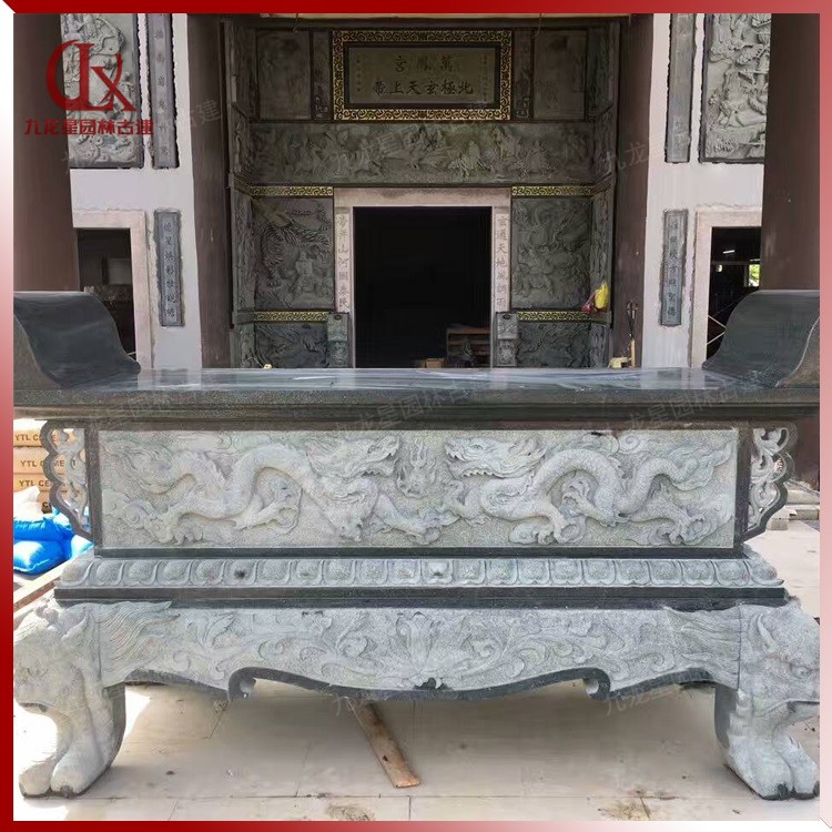 青石供桌 石頭香案供桌圖片 寺廟石雕供桌訂做 九龍星