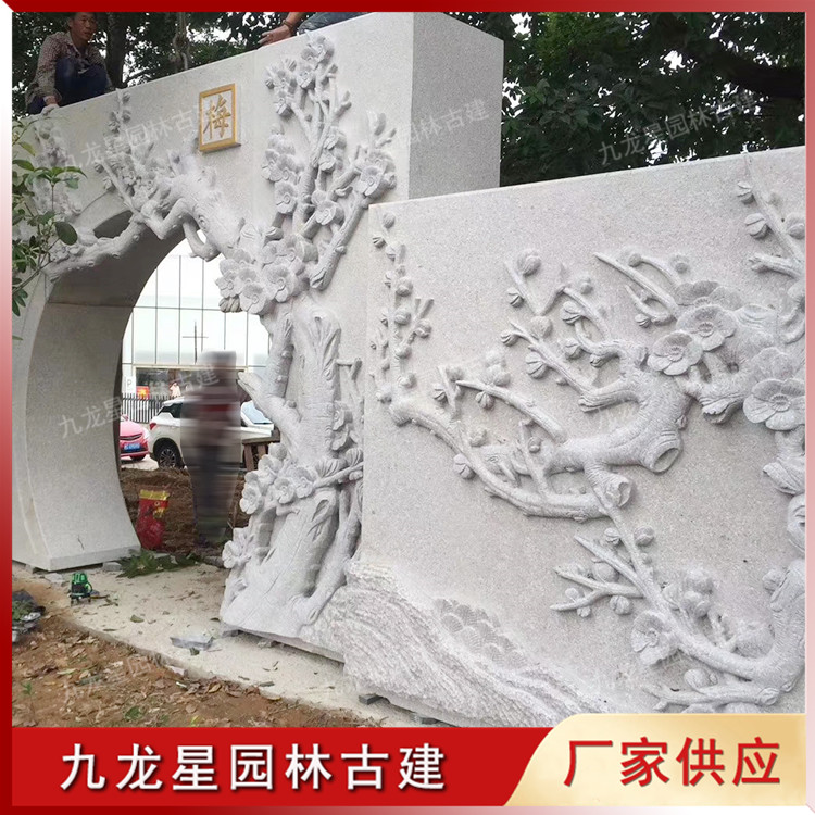 石雕梅蘭竹菊浮雕壁畫 花中四君子雕刻 九龍星