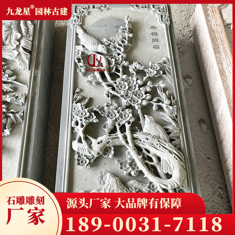 青石浮雕畫春夏秋冬圖案 寺廟浮雕墻石雕刻 九龍星
