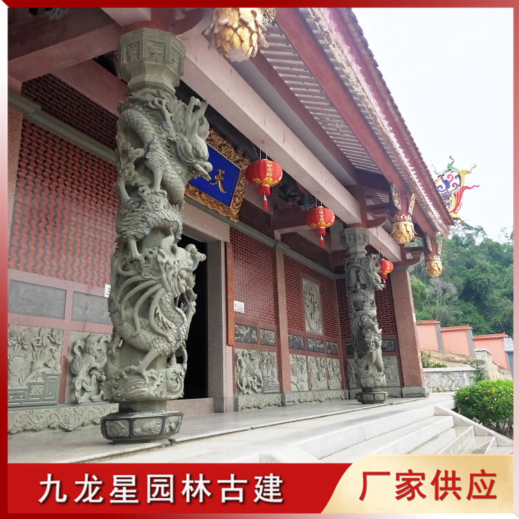 盤龍柱石雕 青石雕龍柱 寺廟石雕龍柱的應用 九龍星